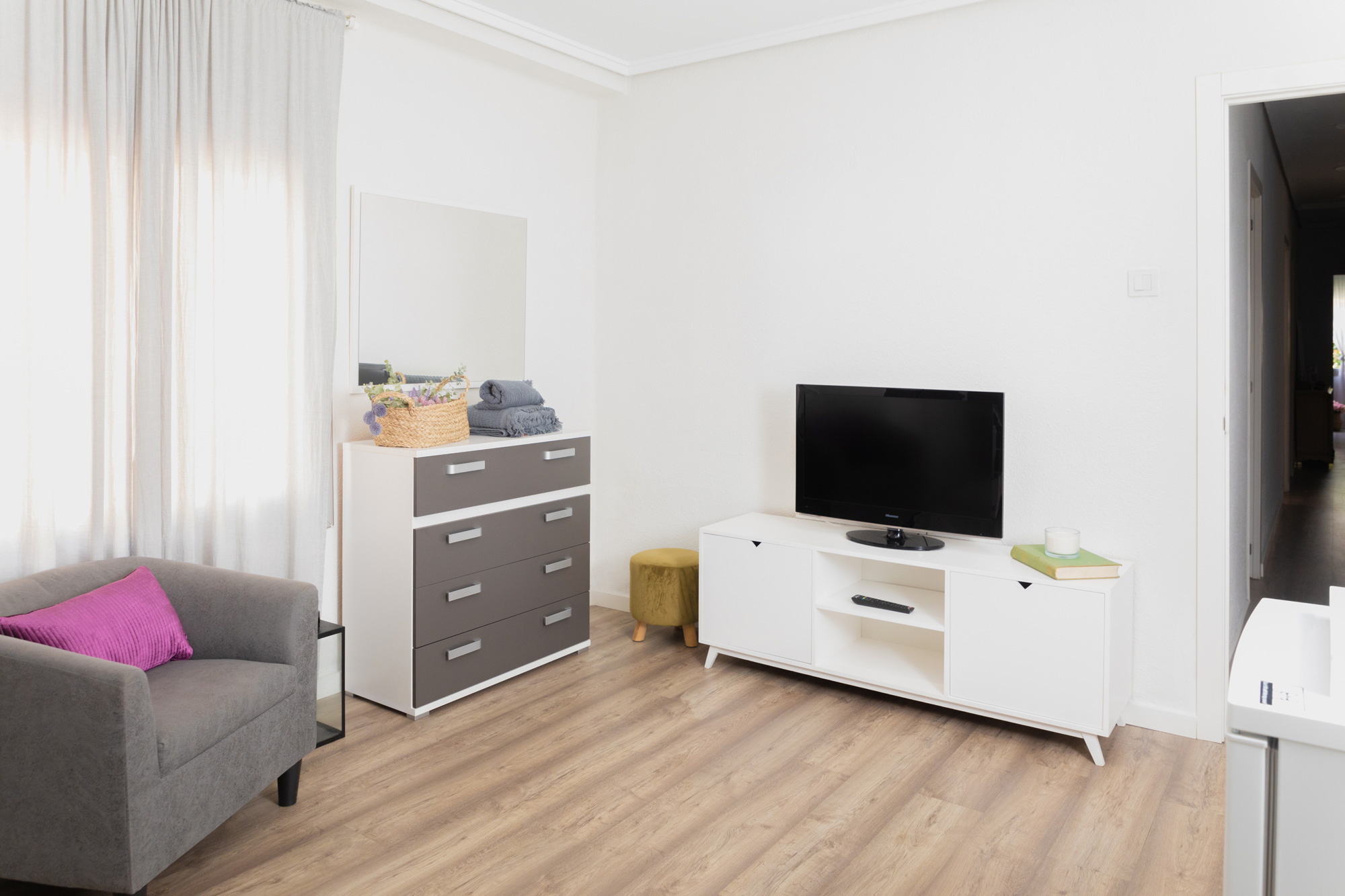 Comfortable and cozy room in a good location. The room has a double bed, an armchair and television.